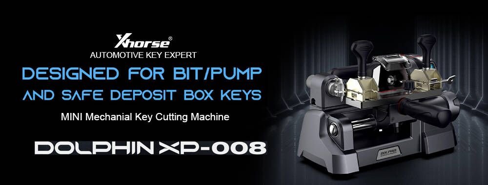 Dolphin XP-008 is Xhorse new released mini mechanial key cutting machine, designed for bit/pump and safe deposit box keys. It is with ergonomic design,all-purpose clamps,high precision processing and easy to carry.